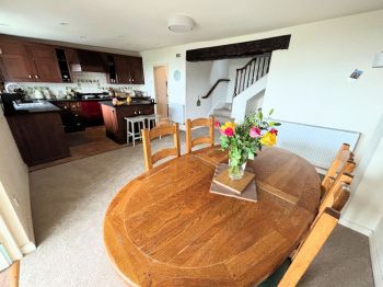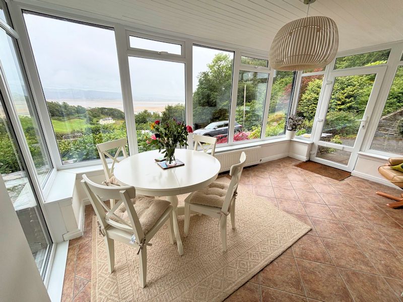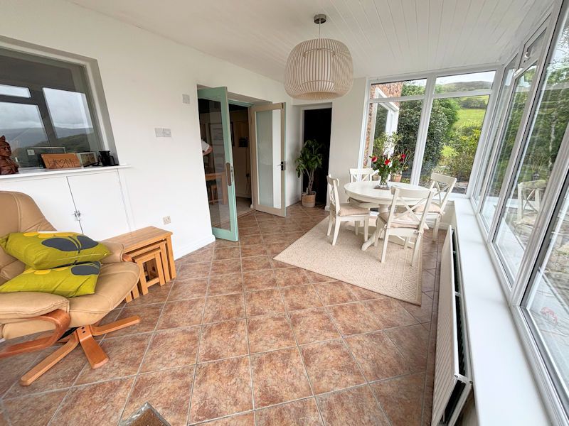 Full length window and glazed door to front with views of the countryside and estuary in the distance, door to sun lounge.