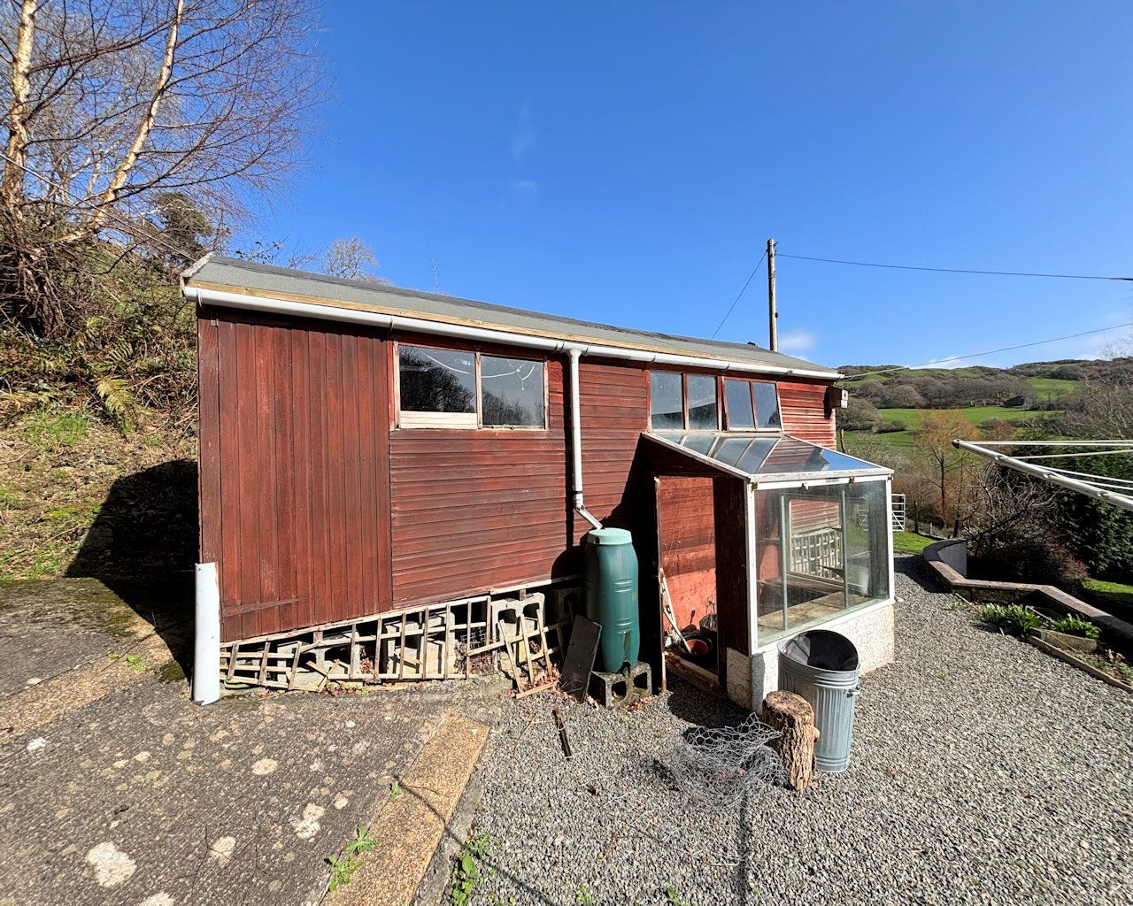 Grounds extend to approximately .75 acre, laid to lawn with mature shrubs at the front, tarmac in and out driveway, rear gravel area with access to stone built workshop (former cowshed) 7.62 x 3.04 with power and 6.09 garden shed also with power. Grounds taper to a point of mainly hillside with mature trees.