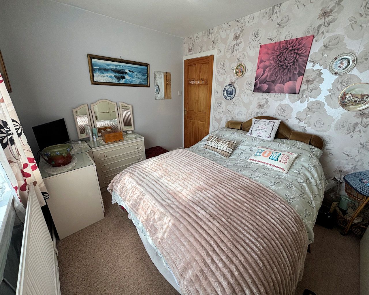Gas centrally heated with upvc wood effect double glazing, the property comprises: