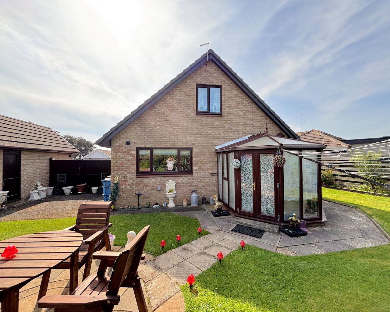 This well presented spacious detached dormer bungalow is situated in a quiet residential location close to the beach and all amenities. Comprising lounge, kitchen / diner, conservatory, double bedroom and shower on the ground floor with a further 2 double bedrooms and shower room on the 1st floor. The front garden is low maintenence laid to lawn with tarmac parking for several vehicles, gated access to the rear maturely planted and fully enclosed garden with access to the garage, storage shed and garden shed.