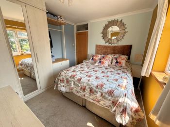 Windows on 2 elevations, built in double wardrobe and drawer unit.