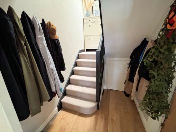 Laminate floor, under stairs cupboard.