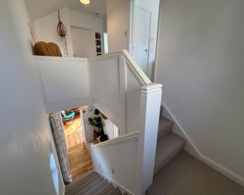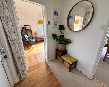 Stairs to 1st floor, large under stairs cupboard, engineered oak flooring.