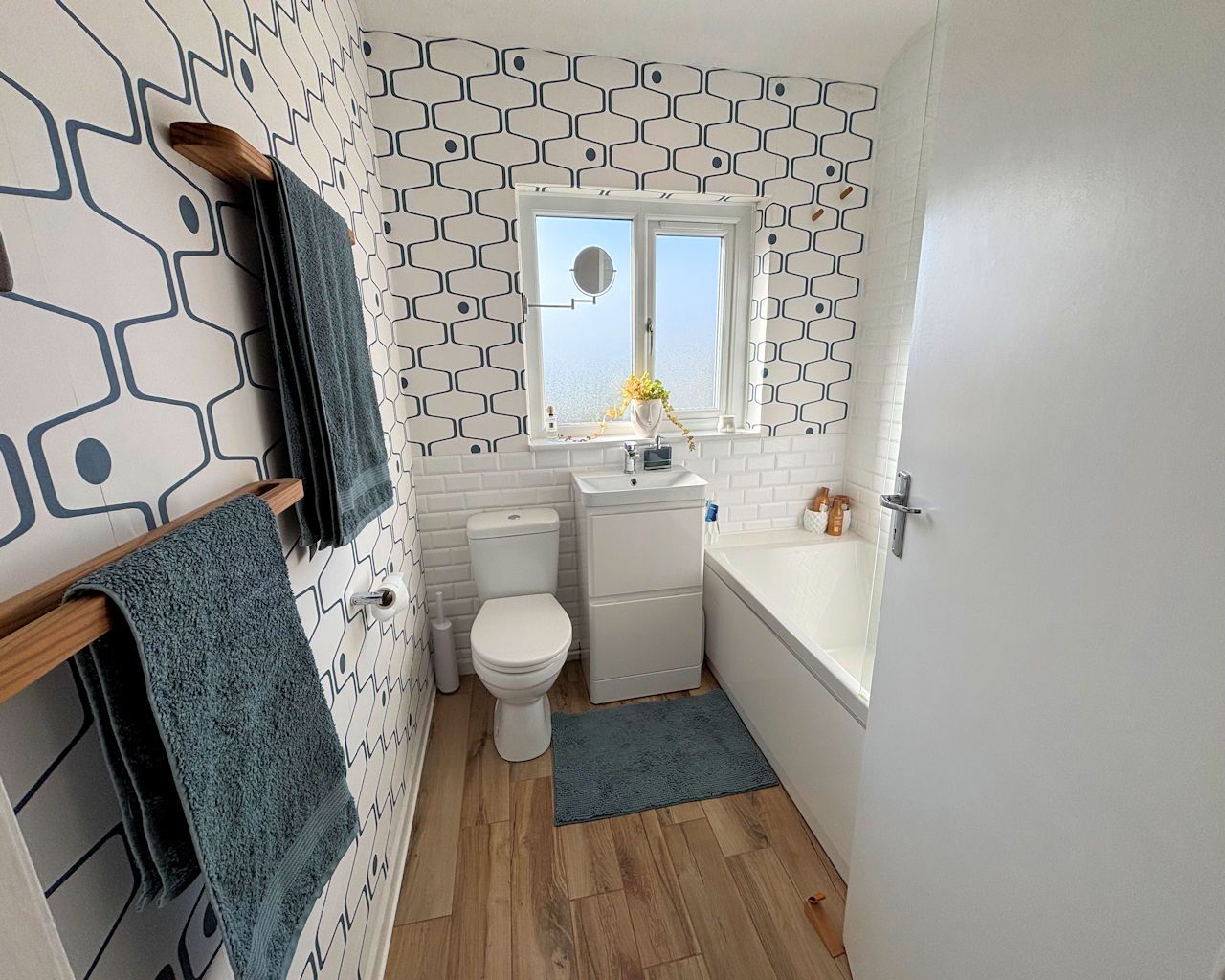 Upvc window to front and side, access to loft, built in cupboard housing pressurized hot water cylinder ( installed 2023).