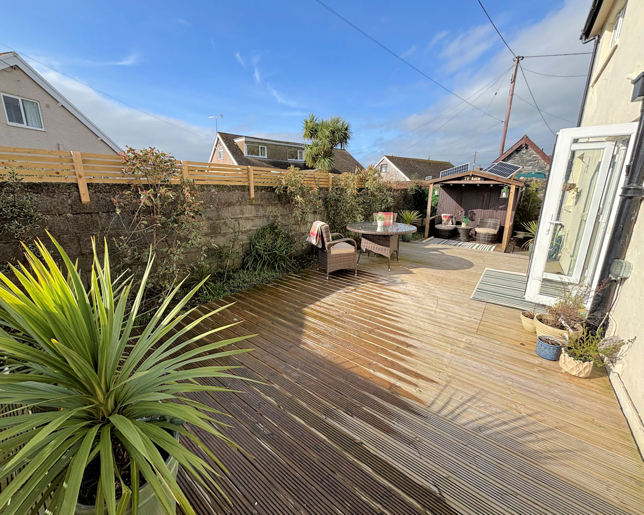 Tarmac parking for several vehicles, enclosed garden with access all round the house, lawn, decked area, greenhouse, shed and coal shed.