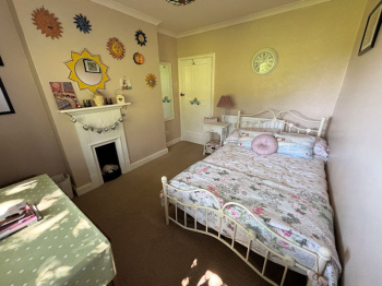 Window to front with distant sea views, original cast iron fireplace.