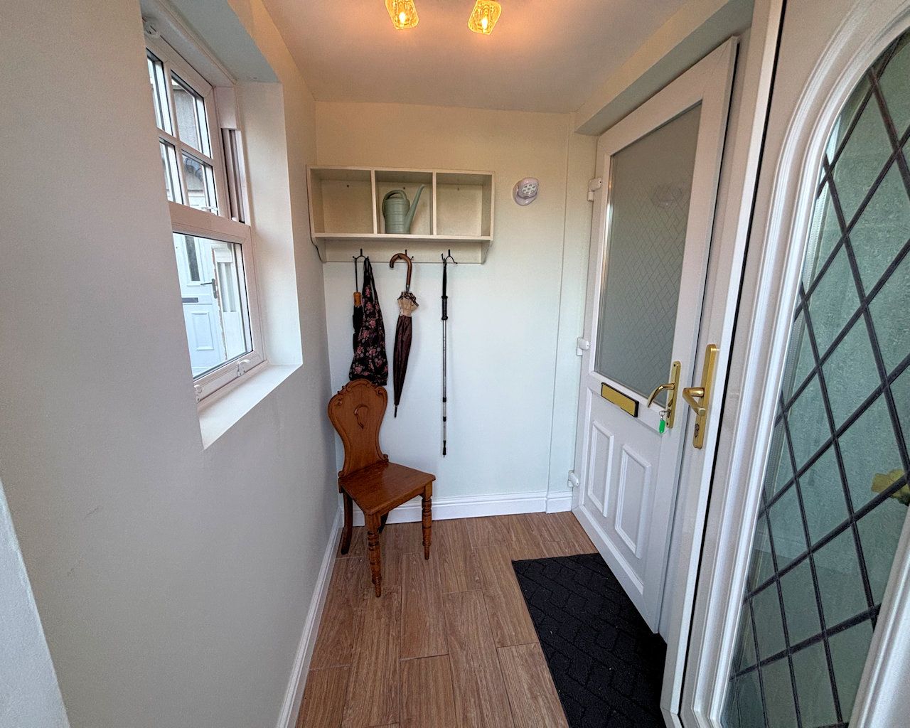 Window to front, tiled floor, half glazed door to: