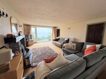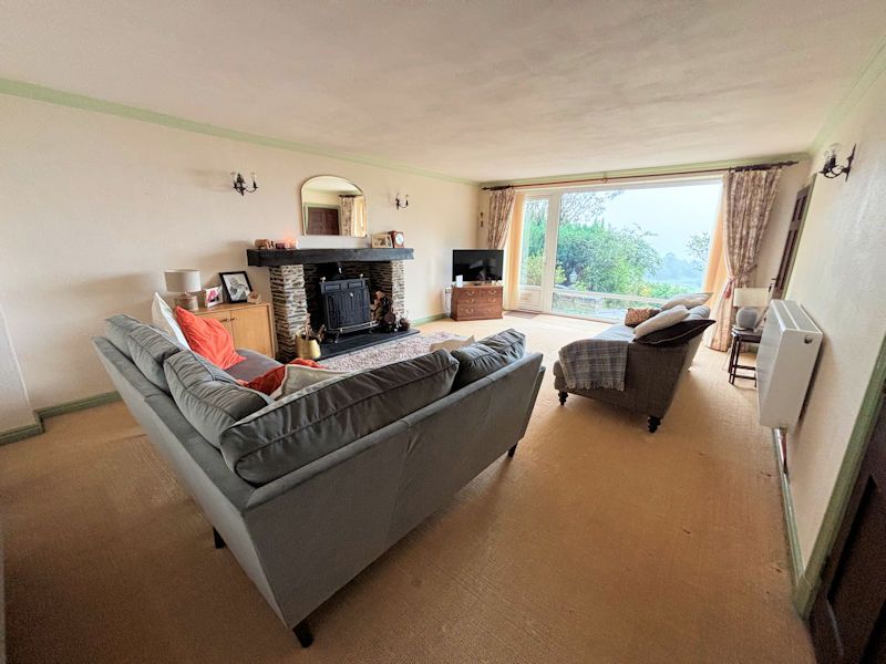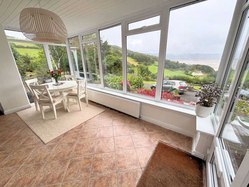 Full length window and glazed door to front with views of the countryside and estuary in the distance, door to sun lounge.
