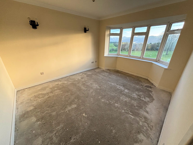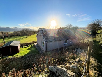 With spectacular uninterrupted mountain views, this 3-4 bedroom bungalow is situated in an elevated position in the rural hamlet of Rhoslefain. The property comprises entrance hallway/small conservatory with cloakroom leading to the kitchen, 2 reception rooms, 3 bedrooms and bathroom. The loft is fully boarded and spans the entire footprint of the building, offering extensive potential to develop further (subject to planning). With electric heating, cavity wall insulation and mainly wood single glazed windows. The grounds extend to almost an acre including part of the hillside behind, and with tarmac parking for several vehicles.