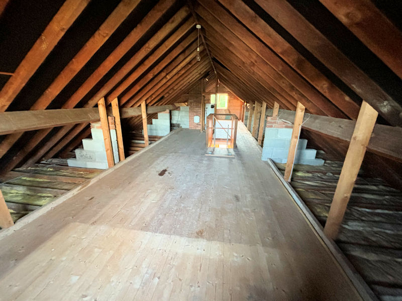 Upvc and wood windows, fully boarded with pull down ladder and light, pressurized hot water cylinder located here.