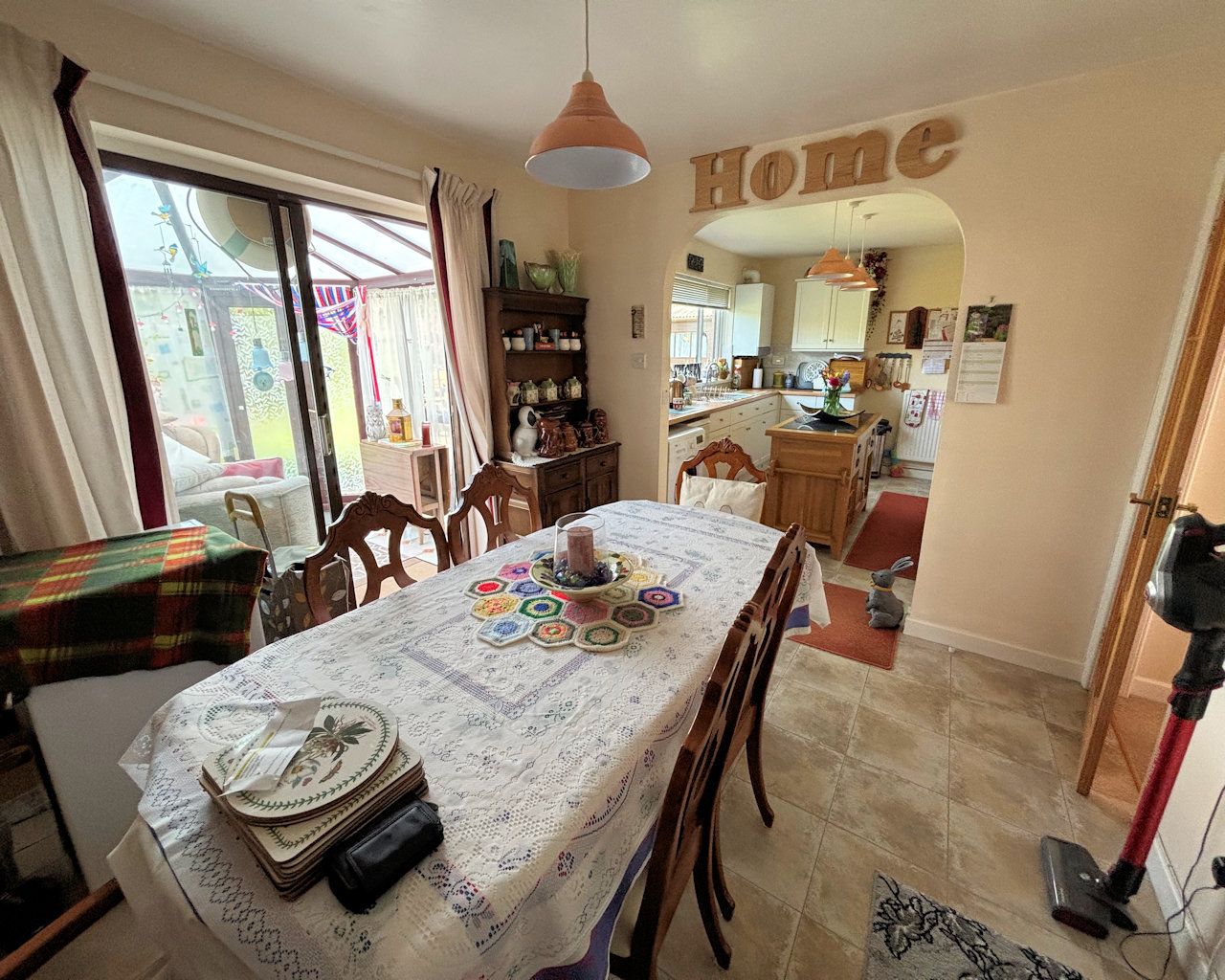 Patio doors to rear, cushioned vinyl floor, open to: