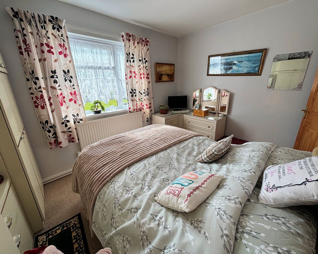 Gas centrally heated with upvc wood effect double glazing, the property comprises: