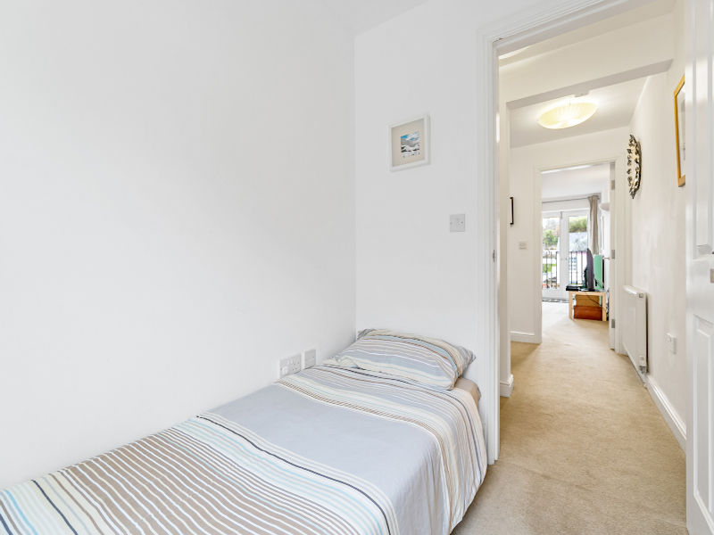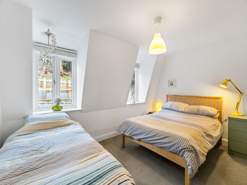 French doors with opening windows above and Juliet balcony to front with partial estuary views. Access to small loft area.