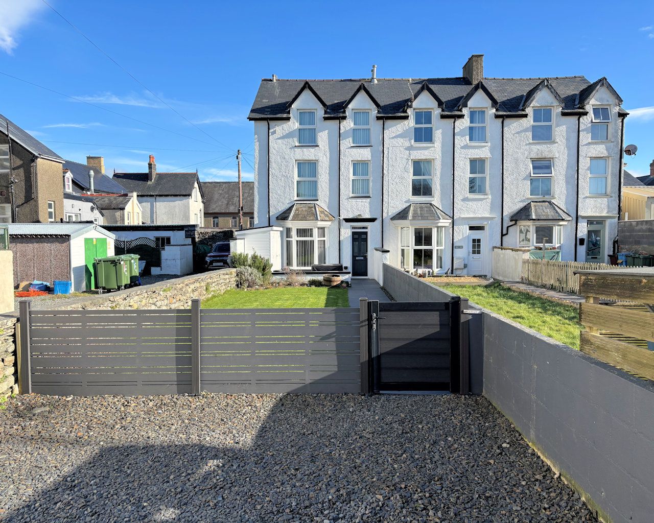 This immaculately presented end terrace townhouse is centrally located with all amenities on the doorstep. Refurbished since 2022 to include new flooring throughout, Partial new upvc windows and composite doors, new kitchen, adding a shower room on the ground floor-perfect for coming off the beach, refitting the 1st floor shower room, redecorating completely and landscaping the front garden by creating the parking area, bin store, erecting storage shed and paving the patio and front path. The property comprises open plan lounge diner, kitchen and shower room on the ground floor with 2 double bedrooms and shower room on the 1st floor and a further 2 double bedrooms plus office or single bedroom on the top floor.