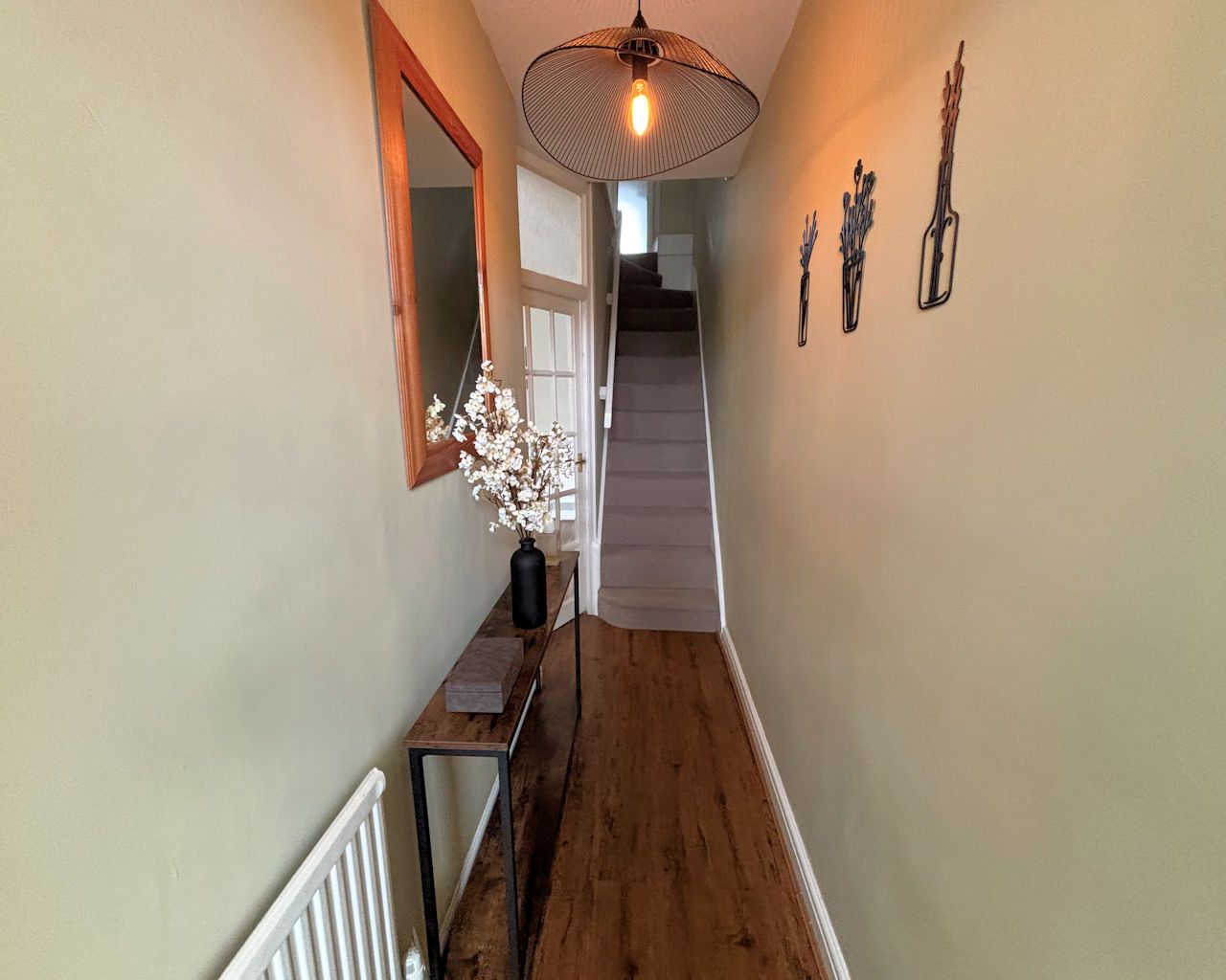 SHOWER ROOM 3.63 x .84 Composite door to rear, LVT flooring, tiled shower cubicle, w c, vanit wash basin, extractor, built in cupboard housing Worcester combi boiler, heated towel rail. Off entrance hall, stairs to 1st floor landing.